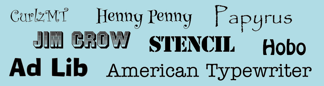 Decorative fonts are the ones that favor novelty over readability. They come in both serif and sans serif variations, and are usually restricted to logos and headlines. As a rule, they should never be used for blocks of text. Popular decorative fonts include Ad Lib, Jim Crow, Mesquite, Stencil, and Old English. They are sometimes used for logos, but, even here, are best used sparingly if at all. Because of the high level of variations between them, they should never be used in email.